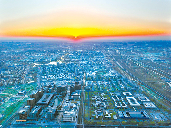 设立雄安新区,是以习近平同志为核心的党中央作出的一项重大的历史性战略选择,经过5年多的建设,新时代“未来之城”正从规划蓝图变为现实样板。图为朝阳中苏醒的雄安新区。新华社记者 邢广利 摄